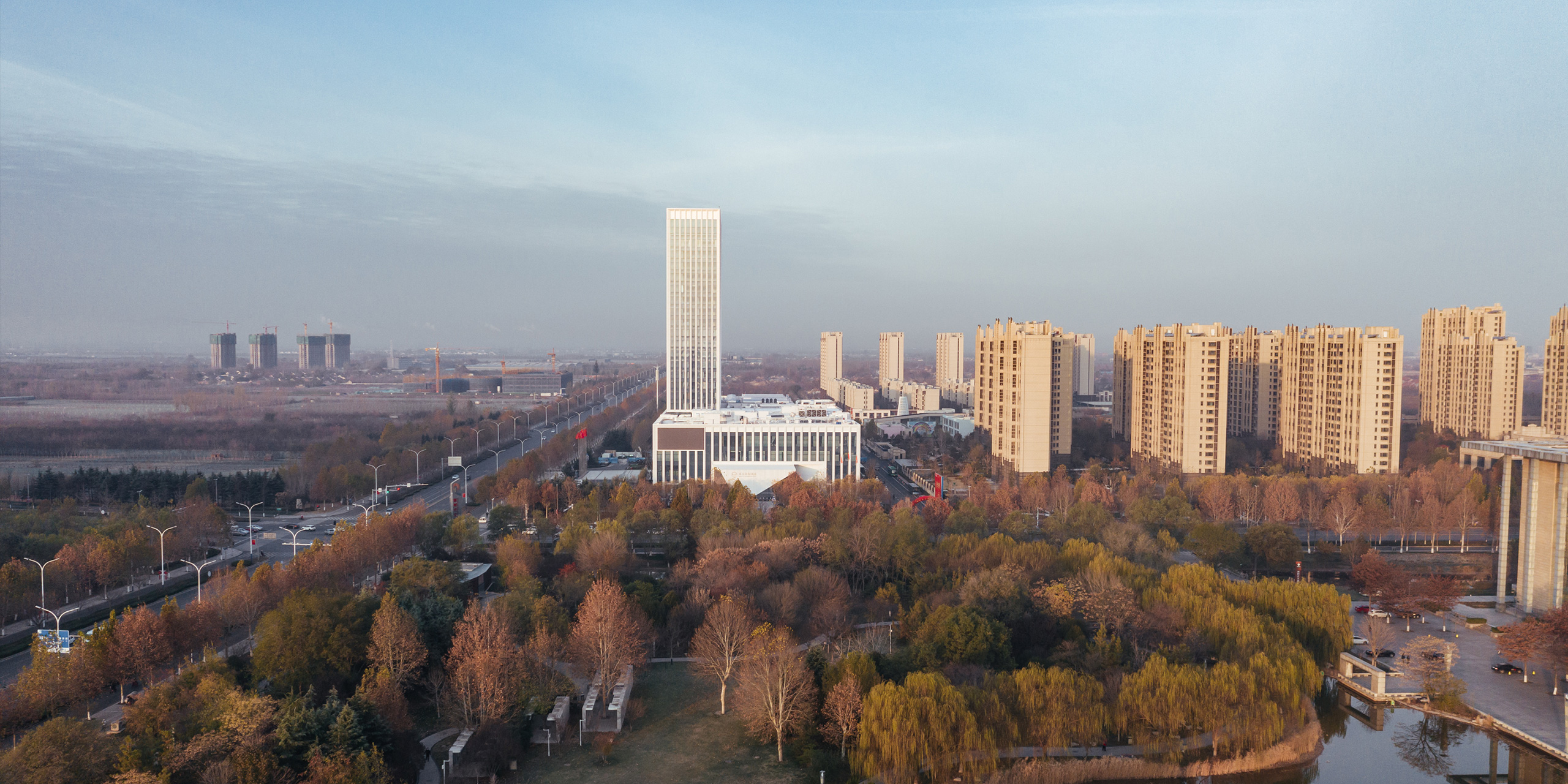 淄博东岳大厦项目位于山东省淄博市桓台县,比邻桓台县文体公园和桓台县文化三馆。同时位于柳泉北路视线通廊上,是淄博市驱车进入桓台的第一道城市界面。项目作为香港上市公司东岳集团未来的总部大楼,同时拟建成桓台县第一座五星级酒店,是一栋集总部办公、酒店、宴会餐饮为一体的综合性高层建筑。